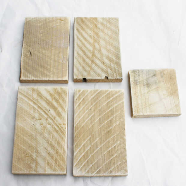 Un 3.5x3.5, dos 5.5: y dos 4.75 pulgadas plataforma. Arena hasta que quede suave.