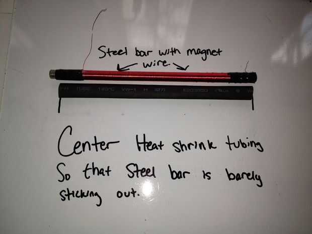Del encogimiento del calor centro junto a la barra de acero para que barra de acero apenas está pegando hacia fuera.