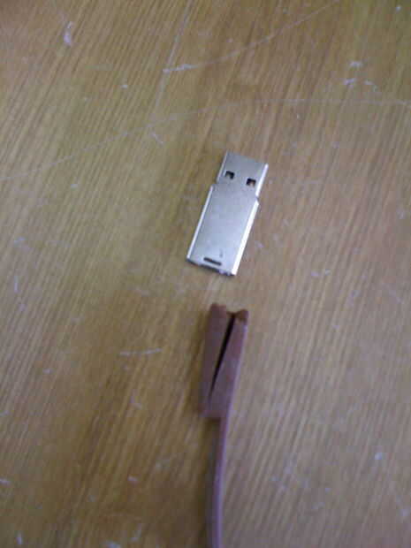 tengo una pequeña memoria USB que guardo en mi cartera, por si acaso. Obviamente no soporte la prueba del tiempo. Una mañana de sábado, en busca de algo nuevo que hacer, he recordaba alguien conseguir un USB dentro de un enchufe usb roto. Este es mi
