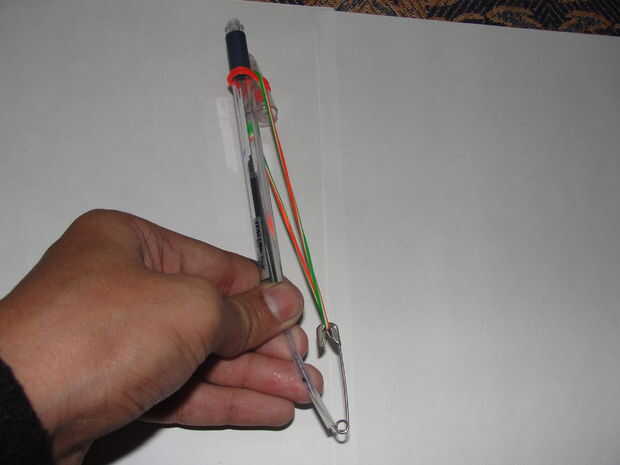 Paso 1: materiales You need :-bandas de caucho-S o C clip-horquilla-lápiz (opcional)Estoy usando púrpura y verdePaso 2: Primer paso Gancho agarrador de la horquilla y su primera banda de goma (el mío es morado) deslícelo a través de la primera cerda,