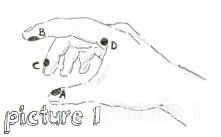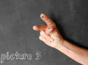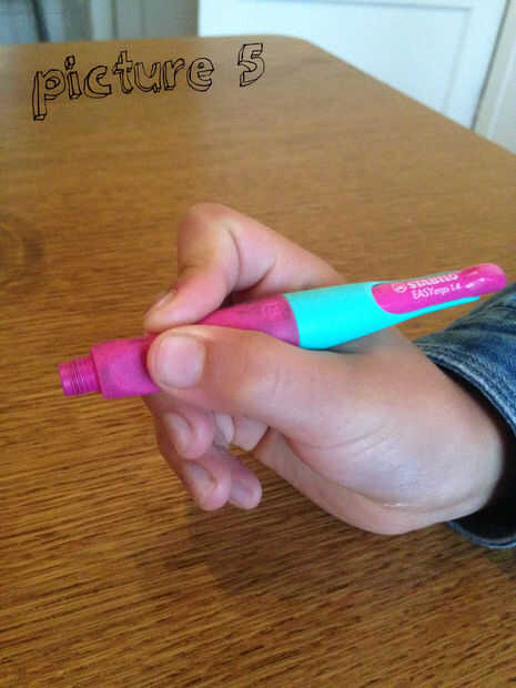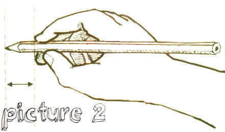 - Poner el dedo pulgar y dedo índice justo por encima del cono que forma parte de su lápiz (foto 2).