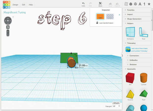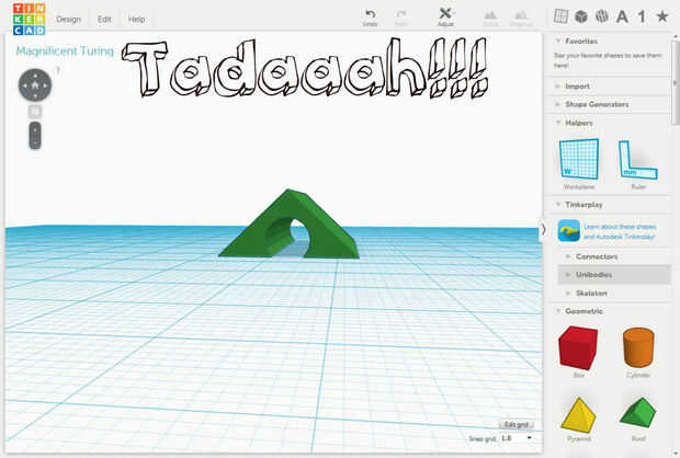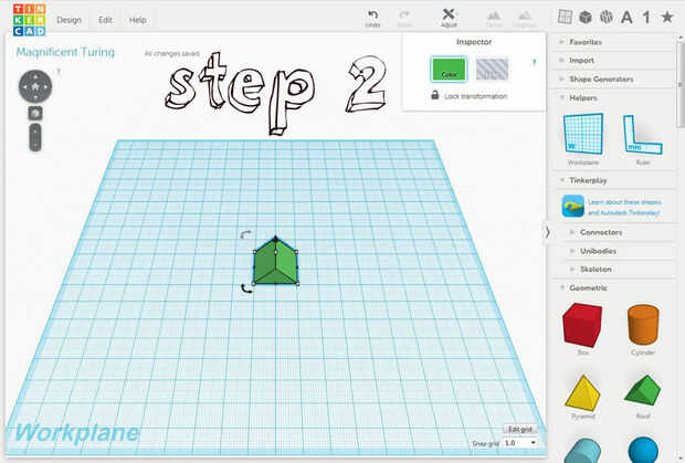 2. Haga clic y arrastre el prisma en el plano de trabajo. Determinar su tamaño. (mina fue de 2.1 cm por 3, 4 cm)