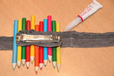 Hice este carrito escritorio pen de un amigo. Cuando las plumas están en el cuadro, el tubo de Nixie indica nada en la pantalla. Sacar un lápiz y se enciende la letra correspondiente a la pluma que falta. También tiene un medidor de flujo de oxígeno