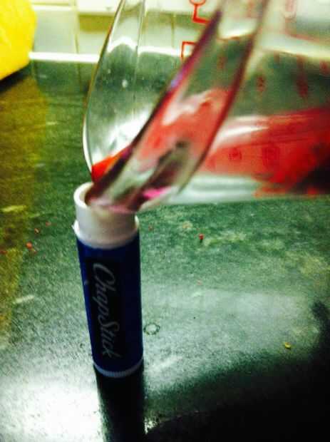 Paso 7: Vierta el lápiz labial en el envase de chapstick.
