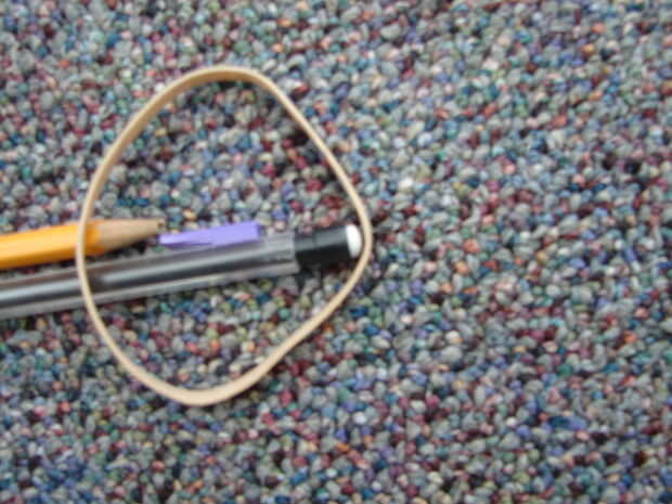 son dos lanzadores de lápiz que acaba de hacer. Las instrucciones son para el segundo, que trabaja de manera mejor. Una regla es la parte principal de esta arma. Un broche aprietapapel es el gatillo, y la energía es suministrada por una banda de cauc