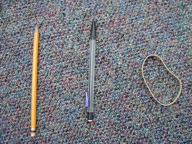Este es el lanzador de lápiz! Puedes hacerlo fácil y rápido con una sensación de materiales que se encuentran alrededor de su casa! Su estructura básica es dos plumas con una banda elástica de cualquier ancho, pero tiene que ser capaz de encajar cómo