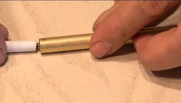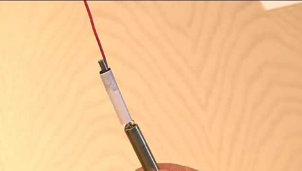 Después de una de las pilas AAAA encontraráhacking abrir la pila Energizer uso como fuente de alimentación. Hizo un pequeño trozo de alambre envuelto firmemente alrededor del extremo del botón de la batería y sujetar y lo se caliente pegamento. Luego suelde el otro extremo del cable al contacto restante en el interruptor de láminas. Coloque un pedazo de paja en el interruptor y el motor pager. Inserte el conjunto completo en el tubo de cobre y soldar el cable restante en el borde del tubo. Es el contacto con el suelo. Compruebe el motor pager manteniendo un imán cerca del interruptor reed. El motor debe girar/vibrar.