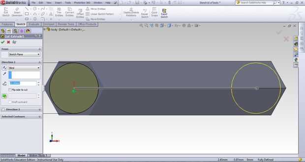 A continuación, utilice la herramienta de corte extruida y cortar el círculo acotado desde el prisma hexagonal extruido.