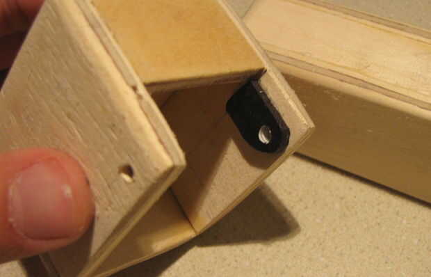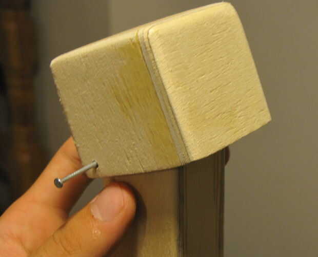 Ahora es el momento para hacer el eslabón giratorio entre el torso y la cabeza. Esto no es demasiado difícil, pero asegúrese de pensar cosas y coloque la placa giratoria en el lugar correcto. El primer paso es perforar agujeros para el mecanismo de giro recorrer en la cabeza. Estos agujeros pueden ser un poco más grandes porque debe girar libremente alrededor de la uña que se utiliza como el eslabón giratorio, utilicé una pulgada 1/8 bits. A continuación debe taladrar agujeros guía en el cuerpo real del robot. Asegúrese de no omitir este paso, porque la madera probablemente se quebrará si libra en las uñas sin un agujero de arranque! Este agujero de arranque debe ser pequeño quede apretado el clavo una vez golpeado en, utilicé una broca de 1/16. Asegúrese de que usted también Perfore los agujeros en la cabeza y el cuerpo en el mismo lugar en cada lado, si se hace correctamente cuando usted coloque clavos de cada lado de la cabeza (no libra en todo... solo empuje un poco para un funcionamiento de ensayo) debe oscile hacia adelante y hacia atrás suavemente. Debe existir un hueco de pulgadas de trimestre entre la cabeza y el cuerpo, en esta brecha en las arandelas que ajuste libremente. Alternativamente puedes hacer tus propios separadores de piezas de chatarra de plástico como lo hice. Como cabe muy bien, que funciona!
