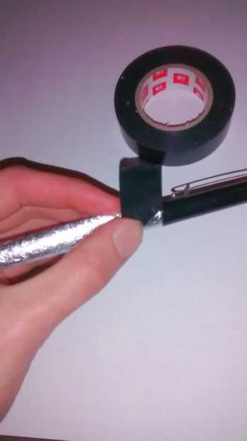 • Tome cualquier objeto cilíndrico, como una pluma y envolver en papel de aluminio alrededor de él. Cinta adhesiva segura.
