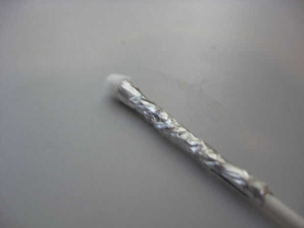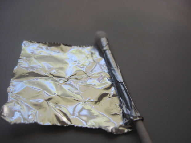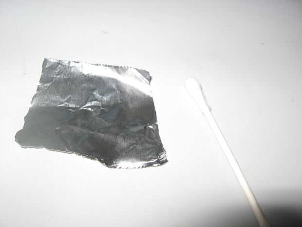 Primero van a rasgar un poco de la hoja para que tenga un pequeño cuadrado, luego envuélvalo alrededor del q-Tip y asegúrese de que al menos el final de la hoja es tocar la parte de algodón en el extremo de la q-Tip. Luego gire la lámina estrecha y casi listo. Lo último que tienes que hacer es conseguir la parte de algodón del hisopo que está tocando el papel ligeramente húmedo, incluso las cantidades más pequeñas de obras de agua.