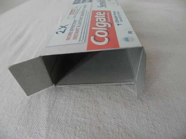 Tomar la caja del tablero de tarjeta (pasta de dientes o cualquier otro). En la pasta de dientes puede ver 4 aletas solía contener artículos en él. corte más amplio los (dos) como se muestra en la foto. Ahora Corte ranuras en ambos lados como se muestra en la foto 2.