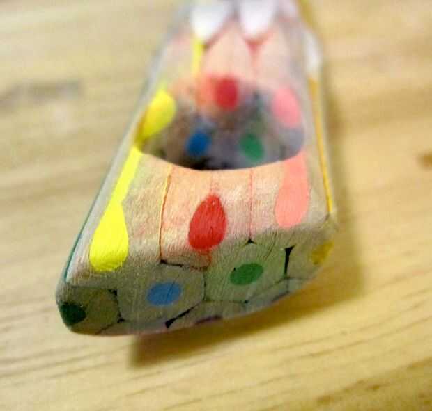 Paso un anillo de una caja de lápices de colores. 12 lápices pegados en un espacio en blanco luego se convirtió en el torno.El resultado es sorprendente! Acabado con laca spray.Tamaño de anillo al poco tamaño de diámetro interno: http://www.walkersje