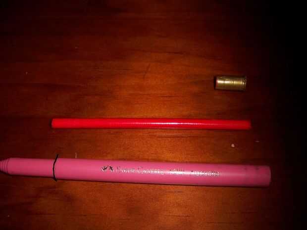 usted necesitará cortar Dónde está la línea, posiblemente un poco más arriba, que era su proyectil (un lápiz) puede volar a través de!