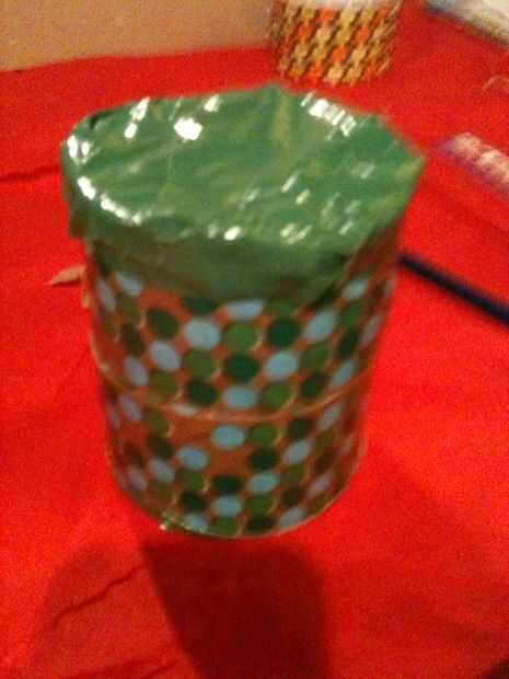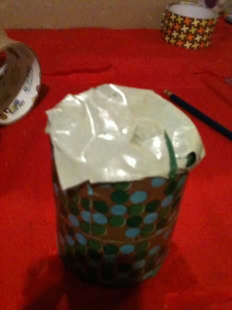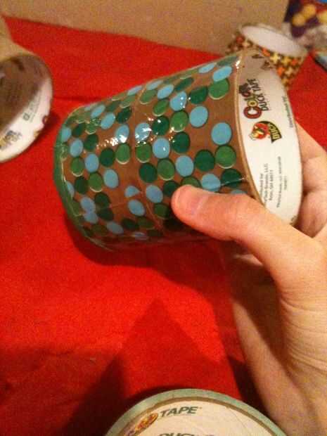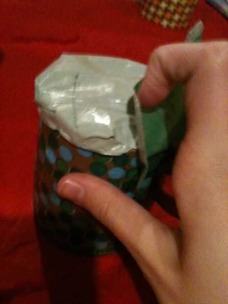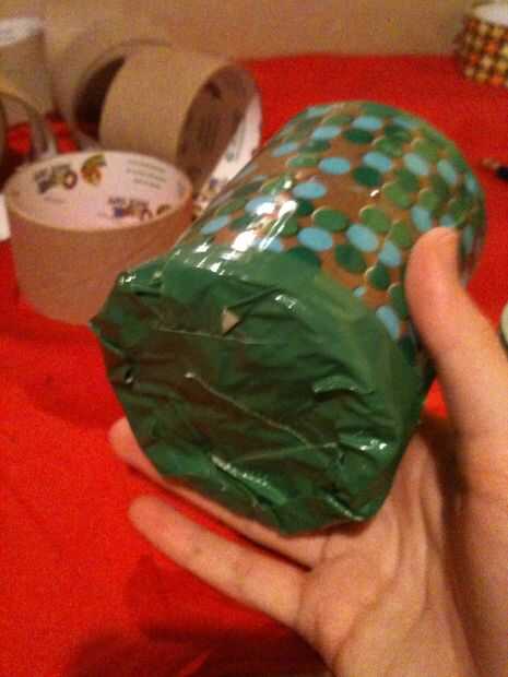 Una vez hecho esto, comenzar a poner tiras de normal (lado pegajoso en) sobre las piezas medias, que son salidas de lado pegajoso. Luego, realizar un borde con un trozo de lado pegajoso en la cinta (normal), usando el mismo método que antes con el borde superior. Pliegue en el centro, y la parte inferior se hace! Si esto no tiene sentido (sé que es difícil con estas salidas de la pegajosas y ins), basta con mirar las fotos para obtener ayuda.