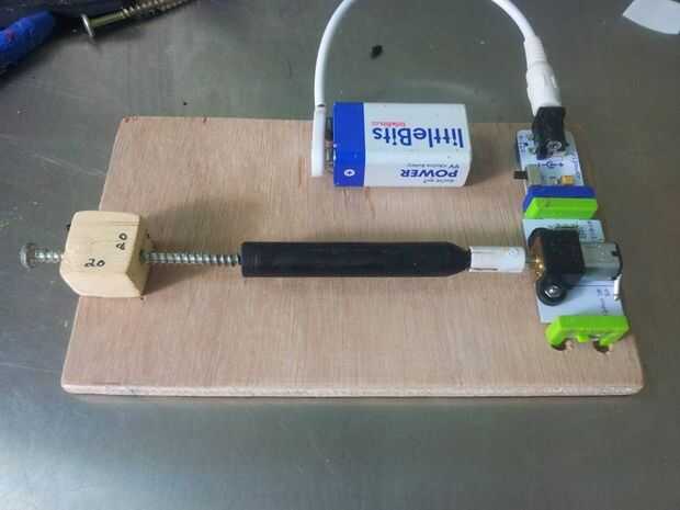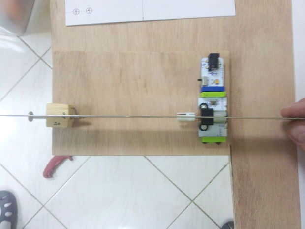2) pegue el bloque residuos en su lugar. Utilice una regla para asegurarse de que el motor y el tornillo ae en una línea recta.