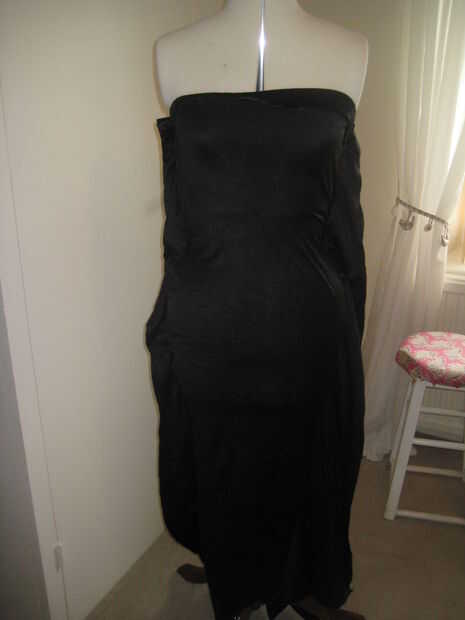 Si no tienes un maniquí de costurera que alguien para sujetar la tela a tu alrededor.   Envuelva la tela alrededor de usted o el maniquí dejando 1/2" extra en la parte superior y extra en la parte inferior. Prender a ambos lados para obtener la forma. Asegúrese de que está bastante apretado. Cuando feliz tack en el lugar. Cortar a la tela sobrante dejando aproximadamente 1" abajo cada lado. Retire los pasadores, quitar de ti o el maniquí y la máquina en una puntada en zigzag con una máquina de coser.