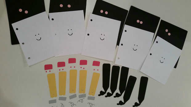 Usando el pegamento (es decir cinta runner o pegamento stick), juntar los pedazos de papel y lápiz.