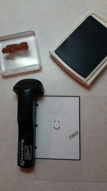 Poner su sello en un bloque de sello y tinta con el cojín de estampilla