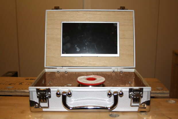 3 | Centro de la pantalla LCD en el tablero y marcar la zona a depilar para que la pantalla se ajusta dentro de la madera contrachapada. Merece la pena medir el área visible de la pantalla y tomar el tiempo para alinear correctamente para que el área visible se encuentra en el centro. Allí también tendrá que ser un recorte para el tablero del menú.