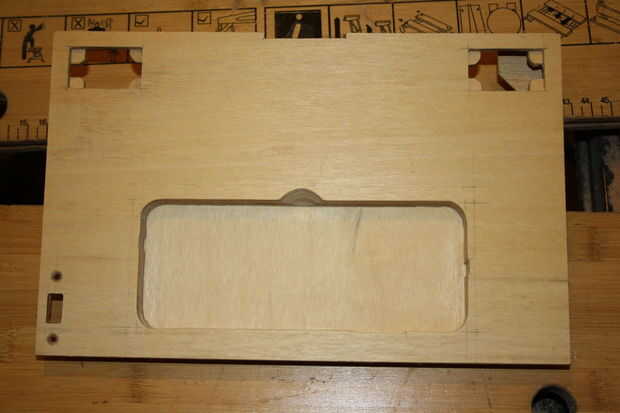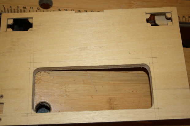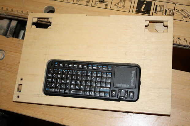 3 | En la parte superior del cuadro de panel de madera donde el bloque es en relación con la parte superior. Marque la forma de teclados dentro de esta área, donde desea que el teclado para sentarse.