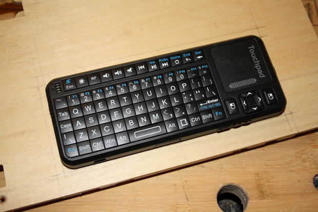 8 | Cortar una placa de base para el teclado de recorte y pegue en la parte inferior del panel.