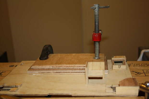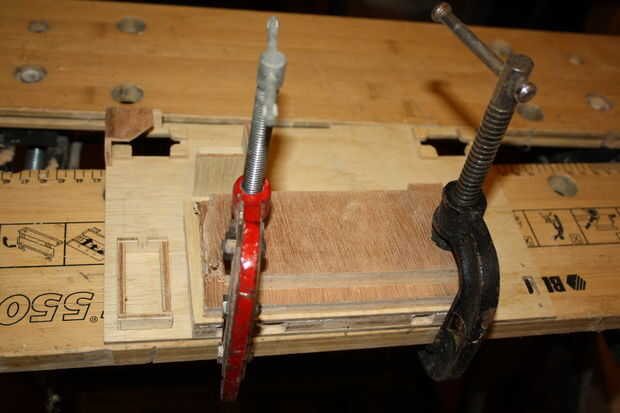 Medir el teclado, y agregar un huésped extra 5-10mm alrededor del borde. Mida la altura del teclado; usted necesitará madera de capa para que el grueso es igual a la altura del teclado. No olvide considerar el panel de madera mientras que cálculo de dimensiones.2 | Pegar el bloque de madera contrachapada corregida de altura que acaba de hacer frente y centro en la parte inferior del panel de madera. Utilice abrazaderas.