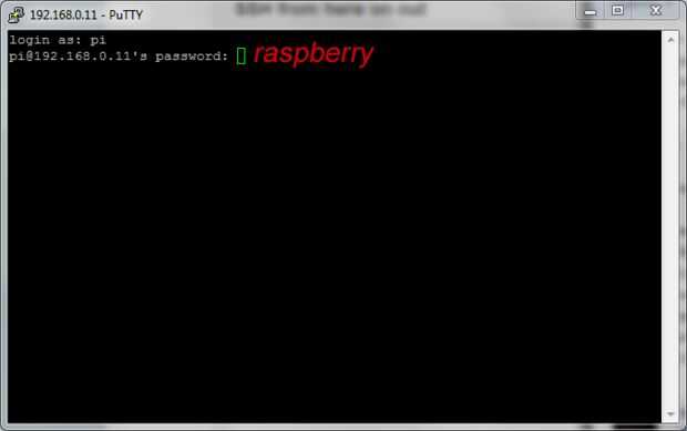 Cuando se abre la conexión a su pi te pido que iniciar sesión como: .. .esta sería pi. Después de entrar, le pedirá una contraseña... concedido que no has tomado sobre ti mismo ir a cambiarlo, la contraseña por defecto es de frambuesa.
