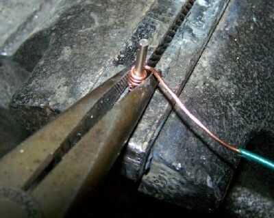 Utilizando la broca como forma, envuelva una bobina un 1/8 de pulgada más largo que el perno en la fuente de alimentación.