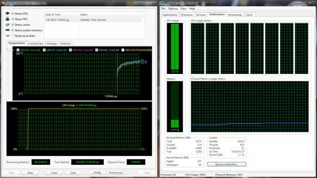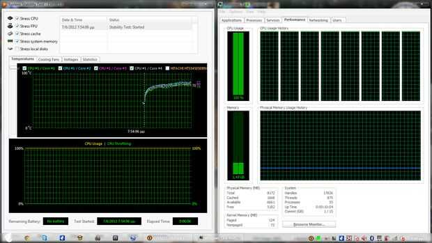 Aquí están todos la prueba de uso de EVEREST Ultimate Edition e hizo una prueba de estrés de la cpu durante 6 minutos