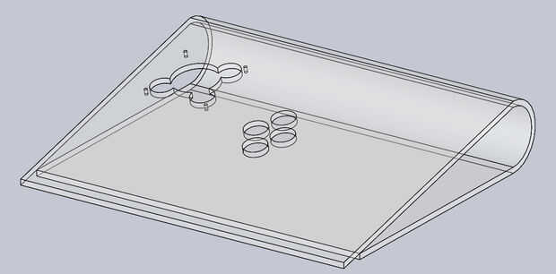 Para la longitud y anchura que hice la tapa a la parte inferior del portátil, el ordenador mide 14 3/4" por 9 3/4" por lo que el ancho de la hoja de acrílico es 15 pulgadas de ancho, que agregué 1/4" por lo que hay algunas habitaciones extra, por 27 pulgadas de largo. 27 pulgadas de largo porque la longitud de la curva de 3 pulgadas es aproximadamente de 5 1/2", la parte inferior es del mismo tamaño que la parte superior. No agrega a 27 porque lo corté un poco largo en caso de que algo salió mal, mientras que doblar. En cuanto a la superposición en la bloquea... así que es justo porque yo no era capaz de doblar, pero resultó para ser un error bueno.
