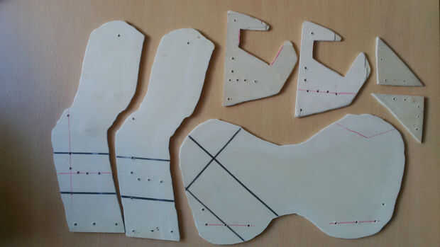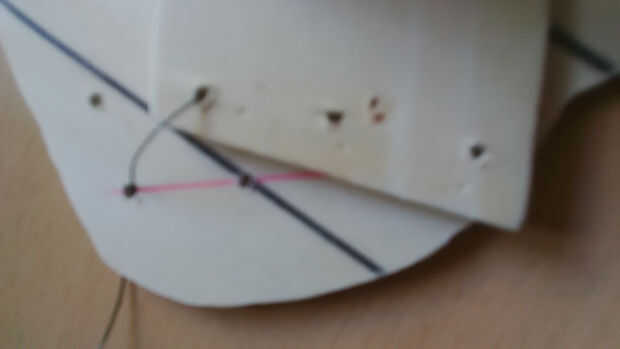 A continuación pueden perforar los agujeros en las piezas, para la tarde les costura juntos. Hacer shure no para perforar los agujeros demasiado cerca unos de otros y
