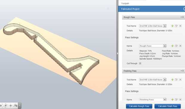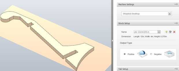 En la ficha de impresión 3D, me mostró la máquina y simular los resultados. Luego "Guardar archivos de Shopbot" produjo los archivos que necesitaba. En realidad, porque la geometría es básicamente 2D, todo lo que necesitaba era el archivo Cutout.sbp.