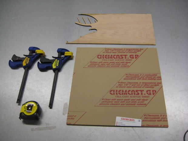 Una hoja de 16 "x 16" de 1/8 acrílico (esto deja un pequeño espacio para márgenes y chatarra)