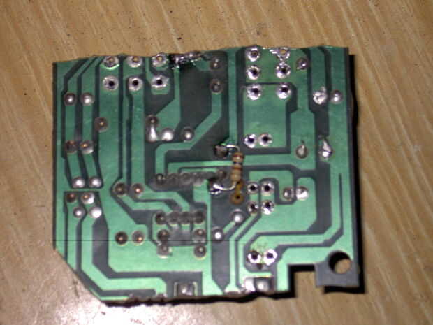 Básicamente lo que hice es quitar las áreas vacías innecesarias en el PCB con los alicates de corte, vuelto a conectar las pistas con alguna soldadura.