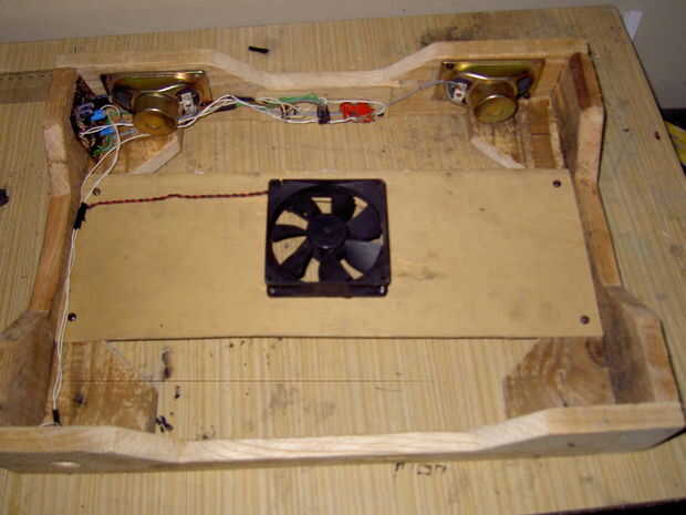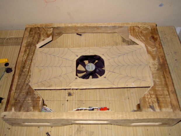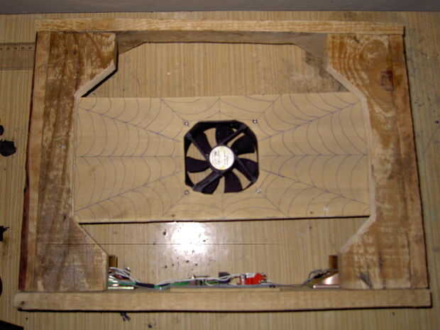 11- suelde el cable negativo del ventilador una los conductores de alimentación de la PCB para el conector de alimentación DC.