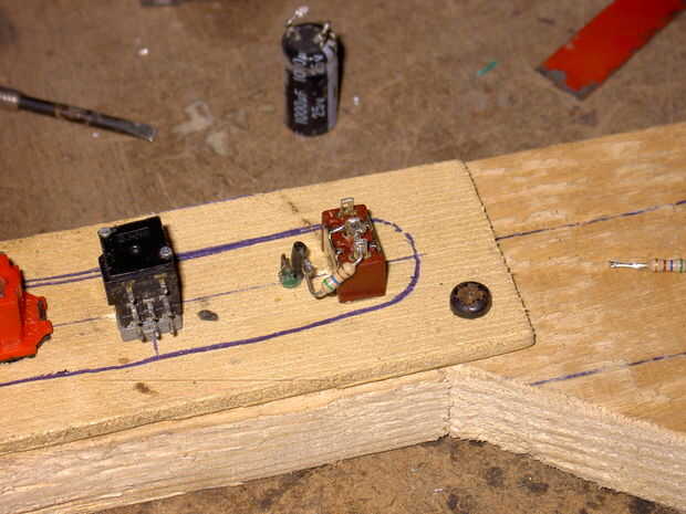 5- ahora empezar soldando una resistencia limitadora actual en uno de los pines del interruptor para el pin positivo del LED verde,
