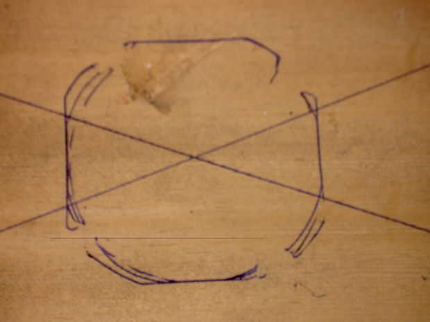 1. Cortar el contrachapado de 2mm a su forma y luego marque su centro