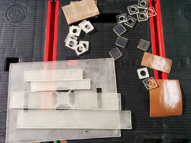 Cuando termine de cortar todas las piezas, utilice un papel de lija para suavizar todas las asperezas de la sierra. Si están pintando su stand, será una buena idea para todas las superficies lisas del desgaste un poco para ayudar a la memoria de la pintura.