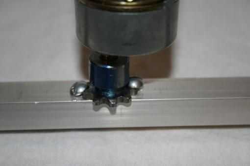 2. a continuación encontramos el centro de nuestra pipa de canal U de aluminio y con el piñón como guía Perfore 2 agujeros para los tornillos.
