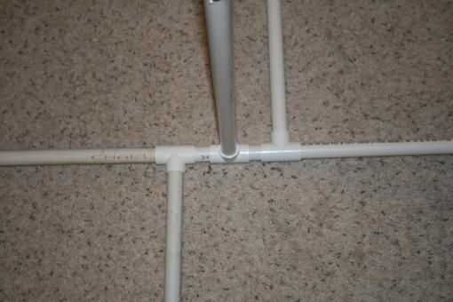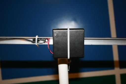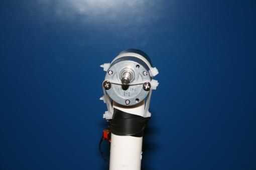 6. aquí podemos ver la vista lateral del montaje del motor con los lazos zip sostiene en su lugar. Hemos añadido en línea de un interruptor y pegadas a la tubería con cinta aislante de algunos así que tenemos una manera fácil de iniciar y detener la instalación.