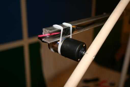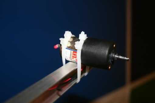 5. a continuación montaremos el motor de unidad principal (sin el brazo para hacer nuestra vida más fácil) a la parte superior de los rectos. Utilicé 2 tornillos en este modelo de motor para crear un punto de montaje fuerte.