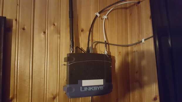 Después de montar una antena yagi que compré online por 25 $ corrí el cable interior para el Linksys Router. Después de una búsqueda rápida he encontrado que el router es uno que está bien adaptado para las modificaciones. El sitio dd-wrt.com da detalles sobre volver a parpadear y compatibilidad con firmware de código abierto (libre).