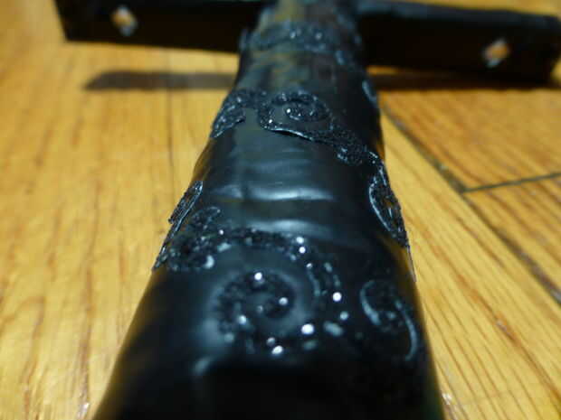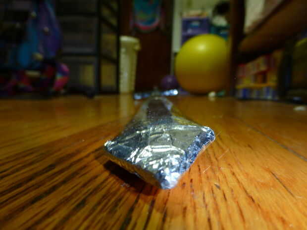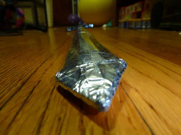 2) una varilla plana de madera. El deluente la barra, el más débil, el más gruesa, cuanto más gruesa la hoja. Usé uno que era probablemente cerca de cinco milímetros de grosor y una mitad de una pulgada de ancho.