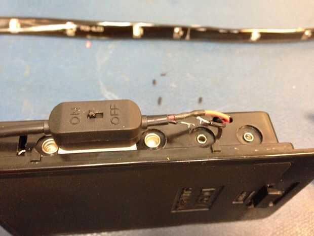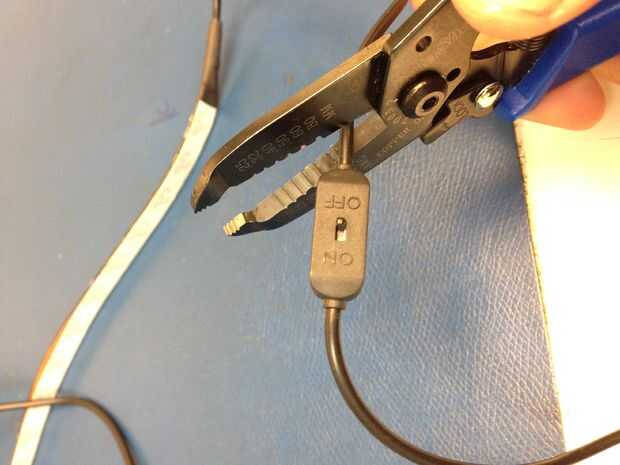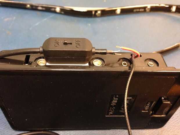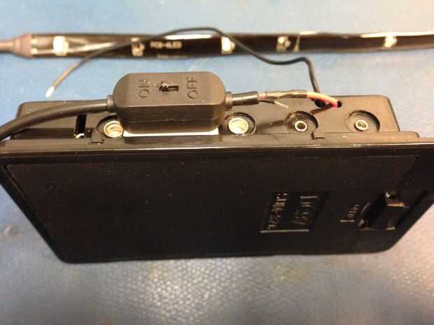 La batería usé no tenía un interruptor de corte integrado (interruptor on/off). Por suerte los Antec LED tenía una línea de corte interruptor usé esto. Lo primero que debemos hacer es cortar el interruptor de alambre y soldadura para los cables de salida de su batería. La mayoría de baterías tendrá cables de salida color revestido (rojo para el positivo, negro para tierra/negativo) como su LED. Nota: Los LED no es unidireccionales en términos de flujo de corriente y por lo tanto no funcionarán si cambia los cables rojo y negro.