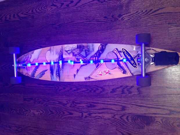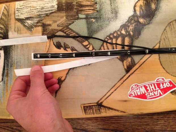 Ahora usted está listo para su instalación en el tablero. Usé cinta de doble cara en la parte posterior de mis tiras LED como no confío en el adhesivo de fábrica que vienen previamente impregnados en ellos. Para la batería usé velcro con respaldo adhesivo (por lo que es extraíble). Si vas con la opción de paquete de batería permanente puede usar cinta de doble cara para el paquete así.