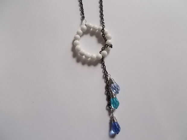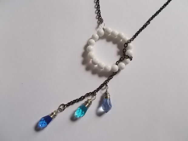 Para poner el lazo, simple enrolle la cadena alrededor de su cuello e inserte las gotas de lluvia en la nube dos veces para asegurar el lazo.