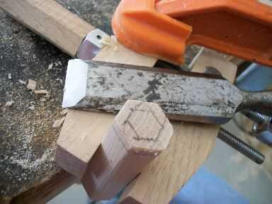 Si tienes una mano firme, es la manera más rápida de conseguir el trabajo hecho con un cincel afilado. Sólo de la abrazadera hasta los mangos como se muestra y tallar las caras hacia abajo 1/8 de pulgada.