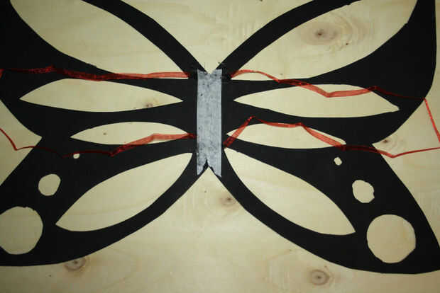 Ahora fijar la cinta. Debe tener suficiente cinta que usted puede usar las alas como una chaqueta.