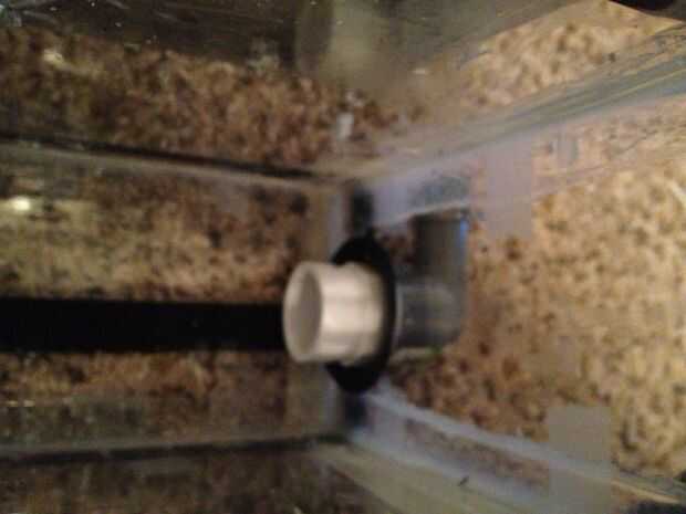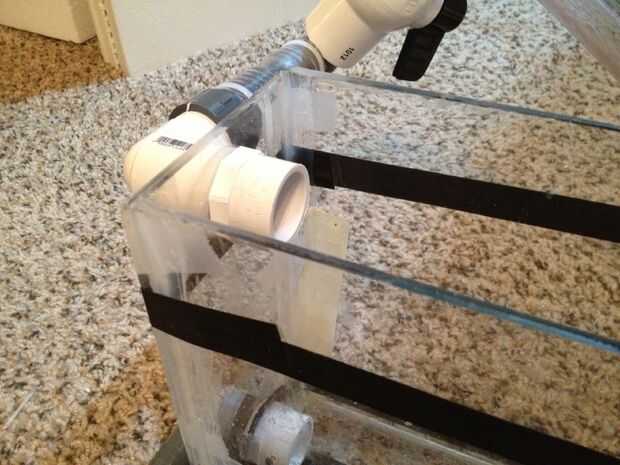 Mayor parte de este paso se hacen en Lowes trajo el panel de plástico en la tienda y luego deje que corte a la forma que necesitaba. Las dimensiones son los siguientes: 12"* 8.5" * 2 4"* 8.5" * 2 4 "* 12" * 2 debe ser en 6 piezas del panel, pero el panel grande no era lo suficientemente grande para todos quería. Salí de la parte superior abierta, que significa que sólo regresé 5 piezas. Usé pegamento de silicona 100% para ponerlos ellos juntos. Se perforaron tres 1" wholes, uno en la parte inferior, dos en cada uno de los lados. (Se muestra en las fotos) 3/4 PVC conectados los drenajes y la parte superior de fontanería.